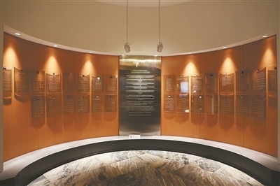博物館展廳一側(cè),弧形墻上懸掛著29塊玻璃匾,分別用與會(huì)國(guó)家和地區(qū)的文字鐫刻著萬(wàn)隆會(huì)議十項(xiàng)原則。