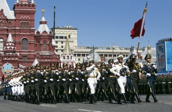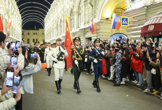 4月24日,被譽(yù)為“中國排面”的中國人民解放軍儀仗司禮大隊(duì)119名隊(duì)員抵達(dá)莫斯科,為參加5月9日紅場閱兵進(jìn)行準(zhǔn)備訓(xùn)練。5月7日,他們參加了日間總彩排。