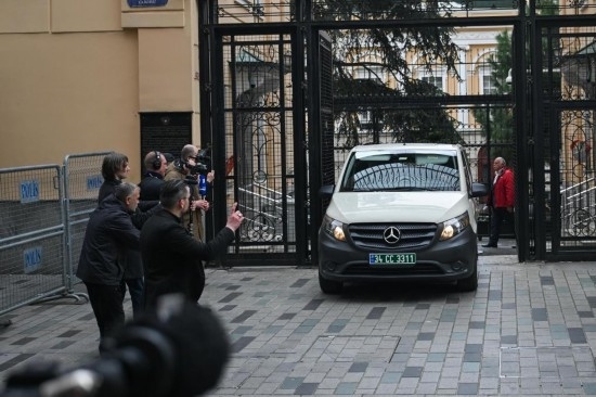 4月10日,在土耳其伊斯坦布爾,載有美國(guó)代表的車輛駛離俄羅斯駐伊斯坦布爾總領(lǐng)館。新華社記者劉磊攝