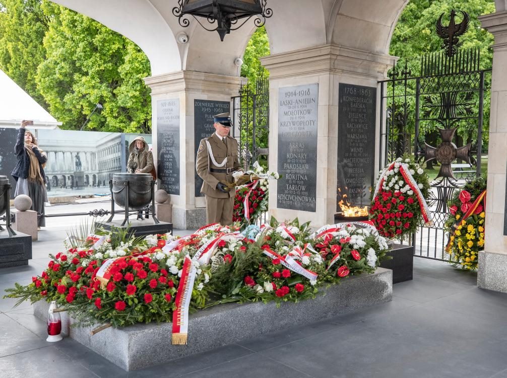5月8日,人們?cè)诓ㄌm首都華沙的無名烈士墓參加紀(jì)念活動(dòng)。新華社記者 張帆 攝