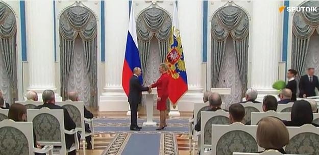 中新網(wǎng)12月25日電 綜合俄媒報道,12月24日,在克里姆林宮舉行的頒獎儀式上,俄羅斯總統(tǒng)普京為俄羅斯外交部發(fā)言人扎哈羅娃頒發(fā)了“祖國功勛”勛章,并祝賀她生日快樂。
