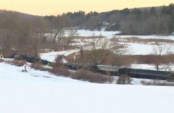 中新網2月6日電 據(jù)美媒報道,當?shù)卣Q,美國東部時間5日上午,一列載有危險化學品的貨運列車在康涅狄格州曼斯菲爾德鎮(zhèn)脫軌,部分車廂滑入附近一條河中。