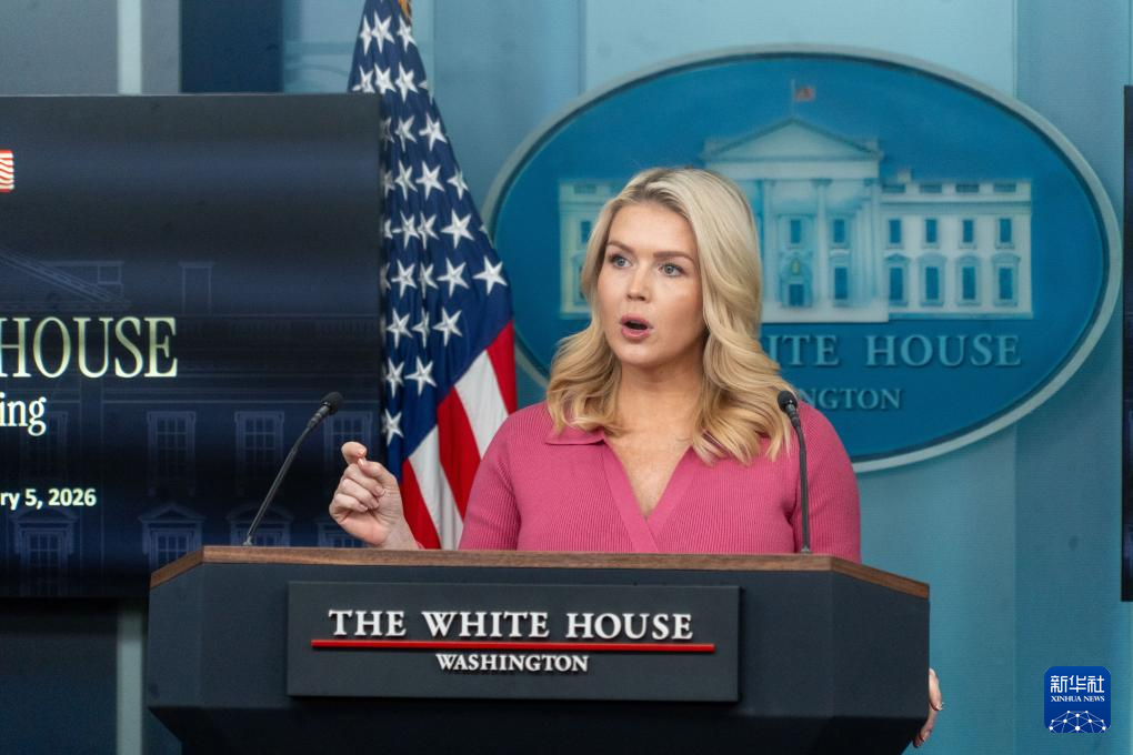 2月5日,在美國(guó)首都華盛頓白宮,白宮新聞秘書萊維特出席記者會(huì)。新華社發(fā)(李源清攝)