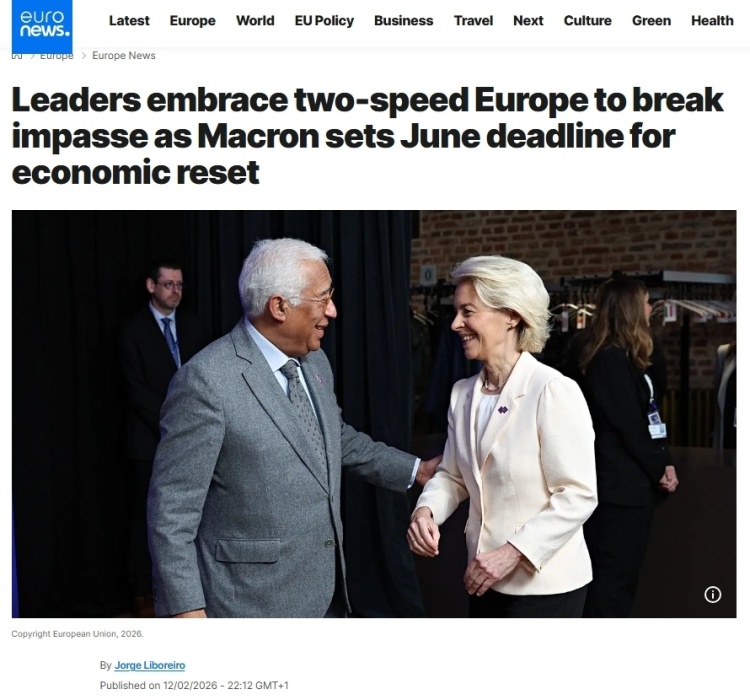 歐洲新聞臺(tái)2月12日?qǐng)?bào)道,歐洲領(lǐng)導(dǎo)人提出“雙速歐洲”作為打破歐盟經(jīng)濟(jì)改革政治僵局的最快途徑。法國(guó)總統(tǒng)馬克龍介紹,領(lǐng)導(dǎo)人們當(dāng)天決定,從現(xiàn)在到6月,必須敲定全面重啟歐洲經(jīng)濟(jì)的議程。如果6月份還沒有具體的前景和進(jìn)展,將在歐盟的“加強(qiáng)合作條款”(enhanced cooperation )下前行。這一表態(tài)被媒體解讀為歐洲領(lǐng)導(dǎo)人為啟動(dòng)“雙速歐洲”設(shè)定了6月的最終期限。