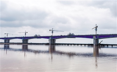 10月5日凌晨,由內(nèi)蒙古高路公司投資,中交二公局承建,包茂高速公路昭君黃河特大橋主橋雙幅順利合龍。昭君黃河特大橋橫亙于黃河,氣勢(shì)宏偉,蔚為壯觀,大橋采用雙向4車(chē)道高速公路標(biāo)準(zhǔn)建設(shè),全長(zhǎng)4300米,分北岸灘橋、北岸跨堤橋、主橋、南岸灘橋、南岸跨堤橋五部分。(王曉博 攝)