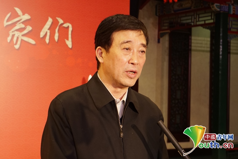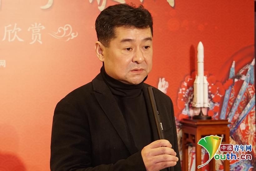 圖為國(guó)家京劇院黨委書(shū)記、副院長(zhǎng)張亞峰向科技工作者送上新春祝福。中國(guó)青年網(wǎng)記者 楊晴 攝