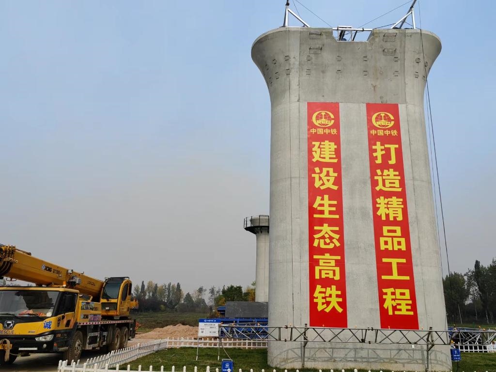 西安浐河之畔,西康高鐵建設(shè)現(xiàn)場。近處,裝運設(shè)備的卡車往來穿梭;遠(yuǎn)處,一座座高鐵橋墩已現(xiàn)雛形。