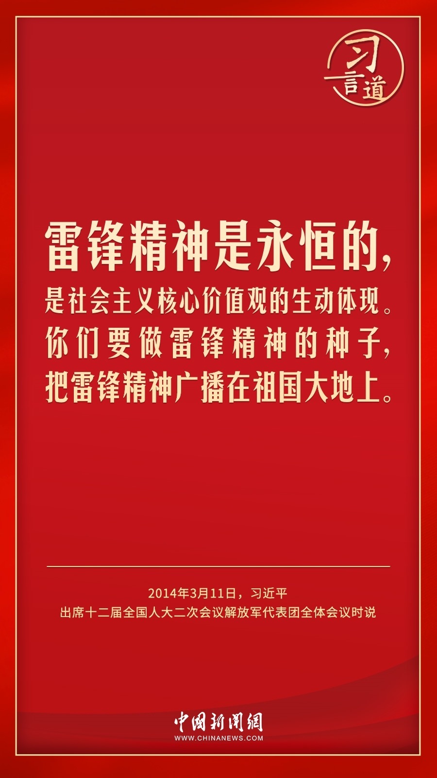 今年是毛澤東等老一輩革命家為雷鋒同志題詞60周年。黨的十八大以來,習(xí)近平總書記就學(xué)習(xí)弘揚(yáng)雷鋒精神多次作出重要指示,他強(qiáng)調(diào),無論時(shí)代如何變遷,雷鋒精神永不過時(shí)。