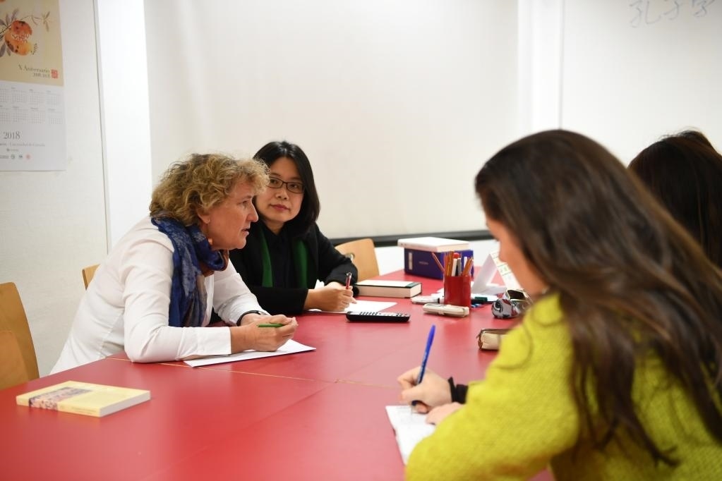 2018年11月13日,在西班牙南部小城格拉納達,雷林科教授(左一)在格拉納達大學孔子學院參加教學工作會議。