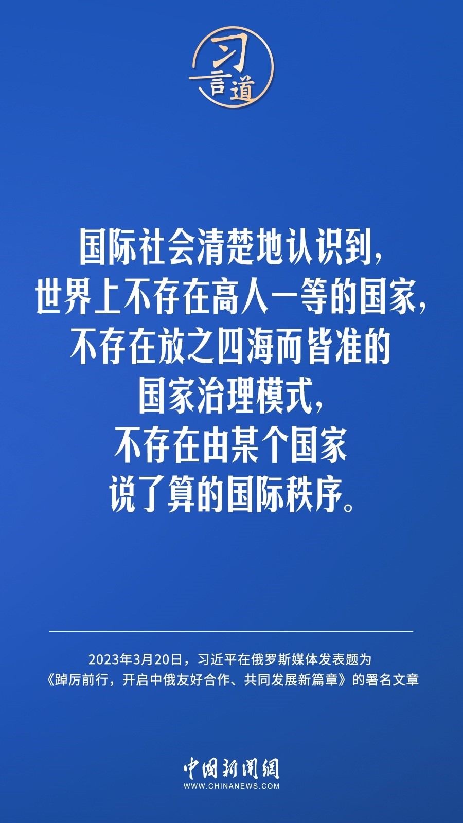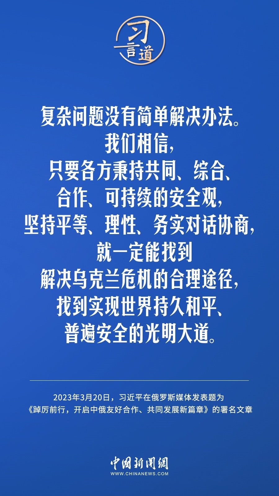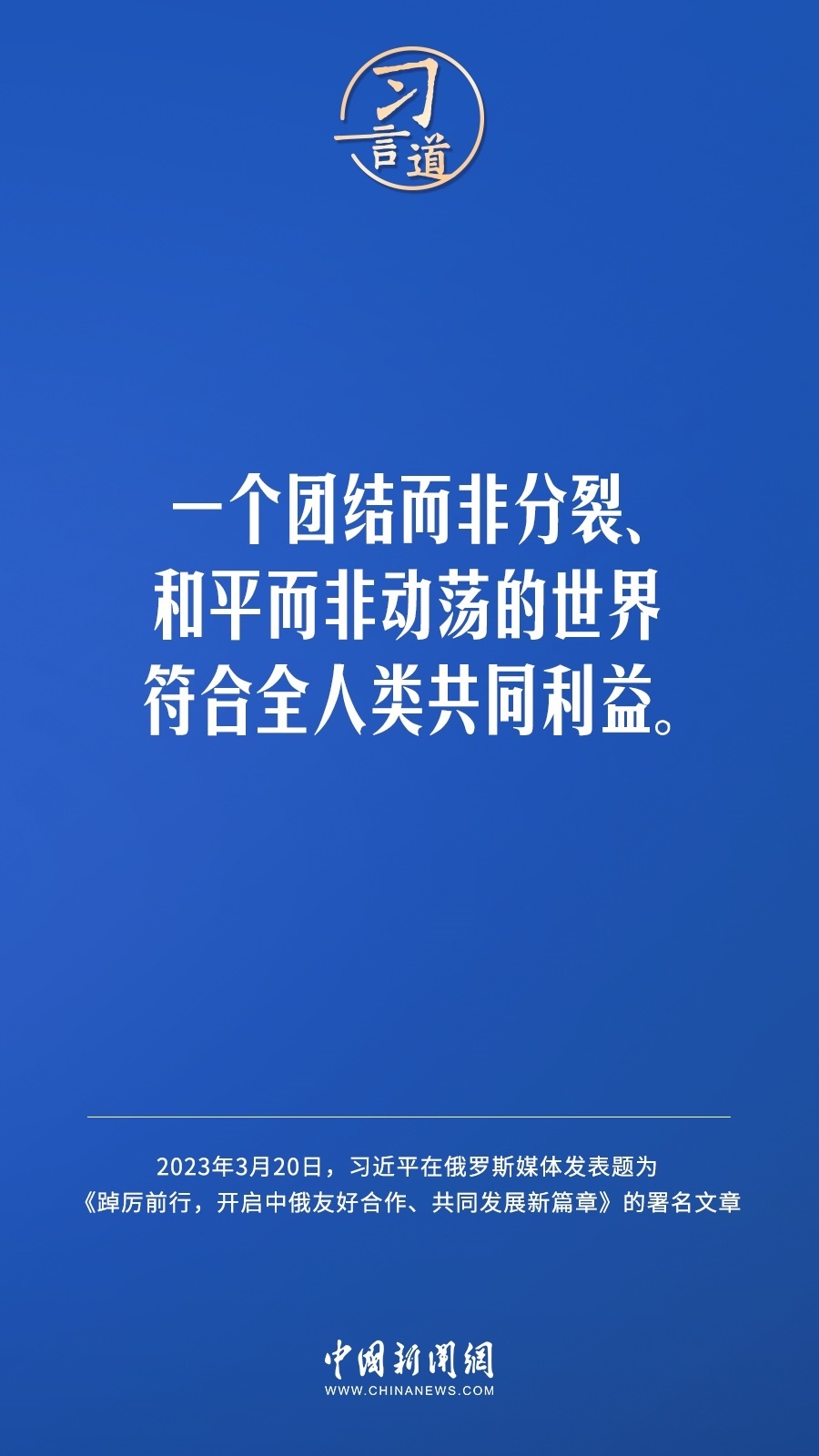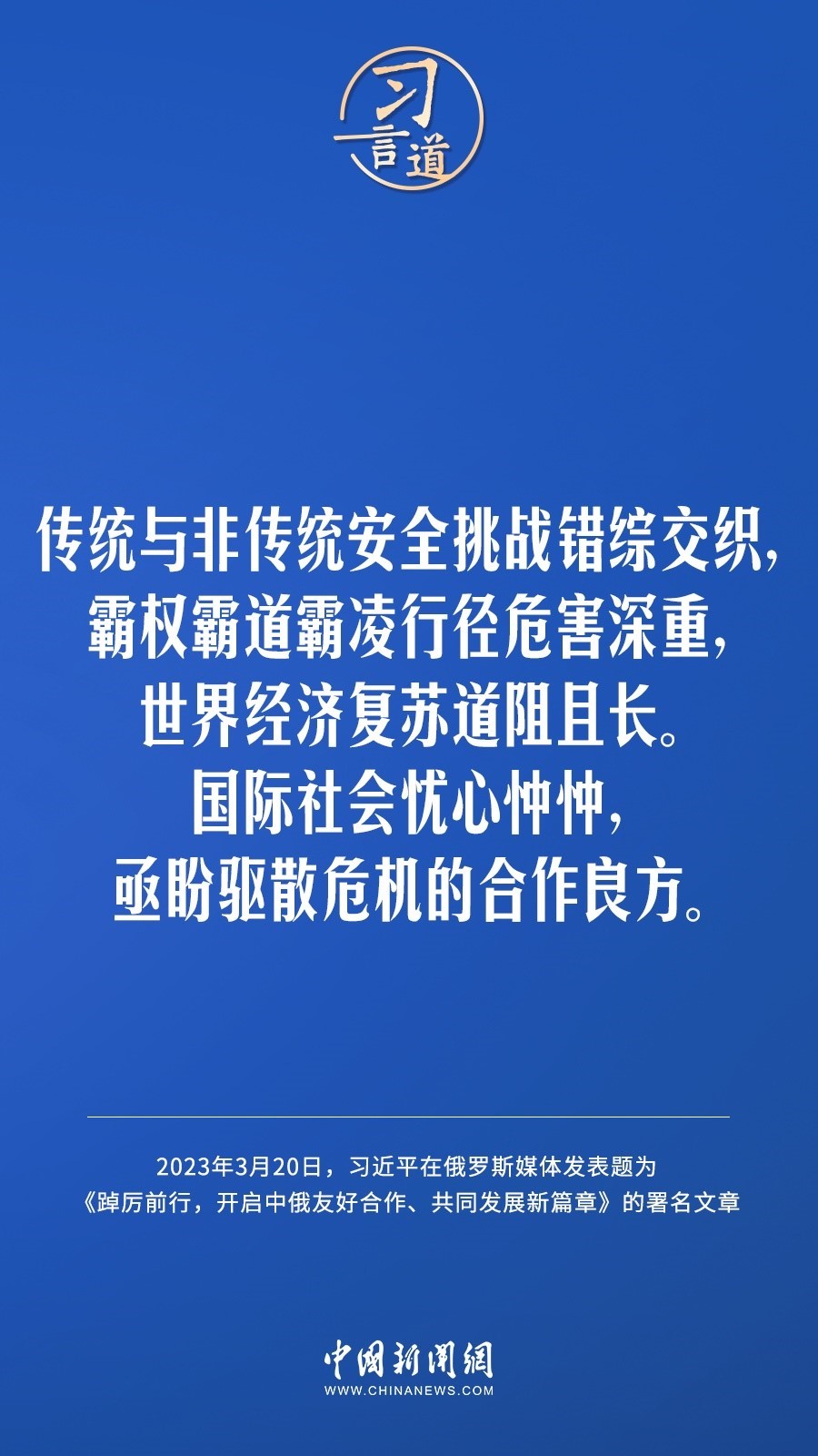 3月20日,在赴莫斯科對(duì)俄羅斯聯(lián)邦進(jìn)行國(guó)事訪問(wèn)之際,國(guó)家主席習(xí)近平在《俄羅斯報(bào)》和俄新社網(wǎng)站發(fā)表題為《踔厲前行,開(kāi)啟中俄友好合作、共同發(fā)展新篇章》的署名文章。習(xí)近平指出——