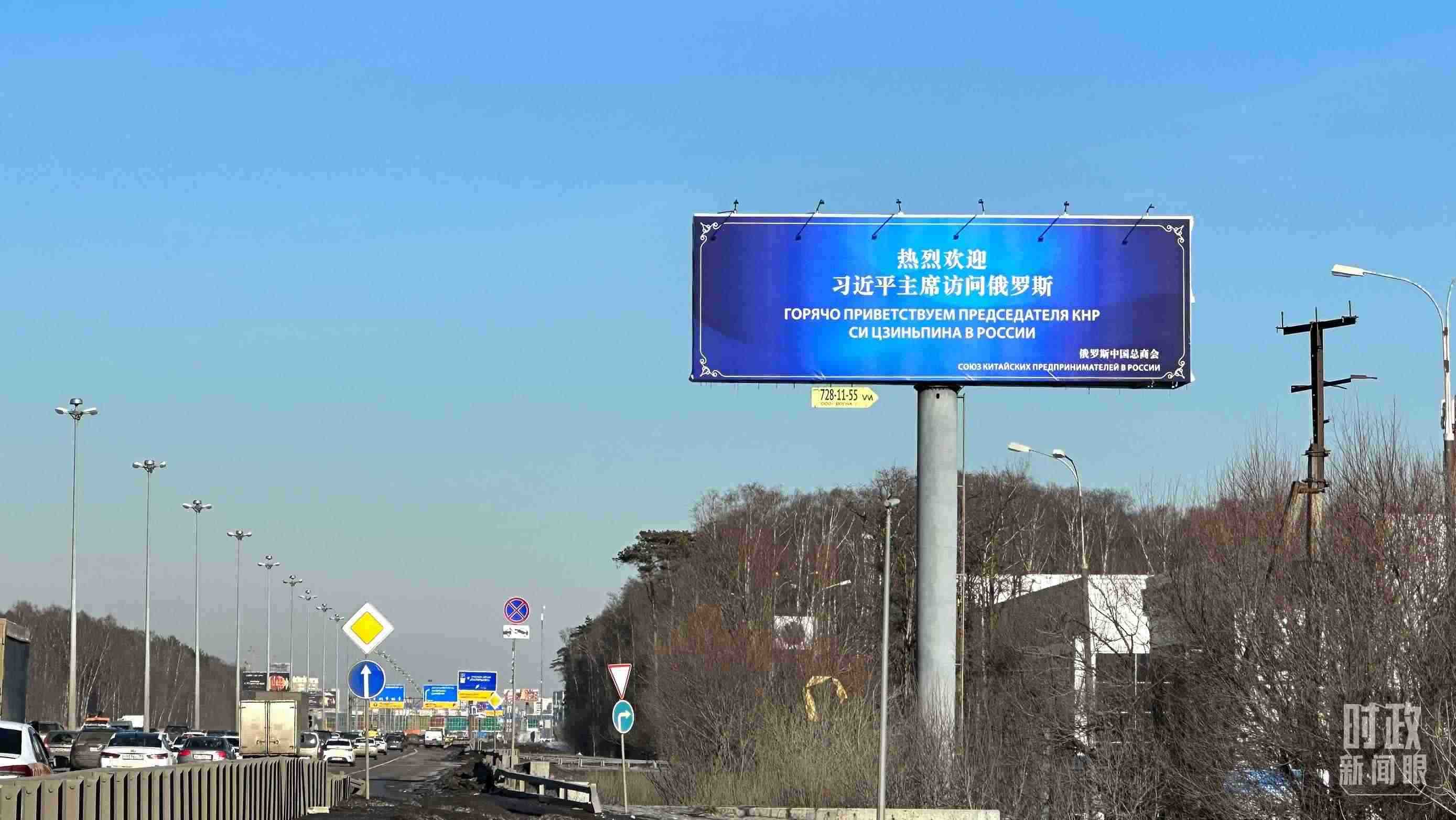 △莫斯科街頭,“熱烈歡迎習(xí)近平主席訪問(wèn)俄羅斯”的歡迎標(biāo)語(yǔ)。(總臺(tái)央視記者覃思拍攝)