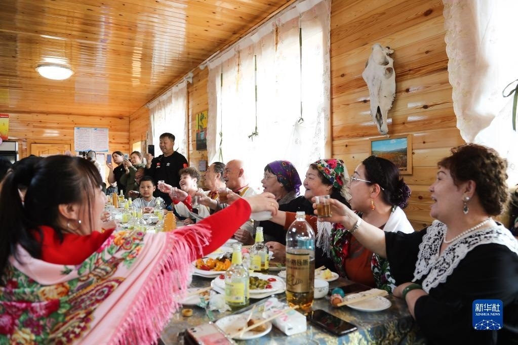 當(dāng)日,內(nèi)蒙古呼倫貝爾市額爾古納市恩和俄羅斯族民族鄉(xiāng)的俄羅斯族群眾穿著鮮艷的民族服飾,載歌載舞,歡度巴斯克節(jié)。已被列入國家級(jí)非物質(zhì)文化遺產(chǎn)名錄的巴斯克節(jié)是俄羅斯族一年中最隆重的節(jié)日,在為期一周的節(jié)日里,當(dāng)?shù)厝罕娖穱L美食、互相撞彩蛋、參加拔河、搶棍等活動(dòng)。