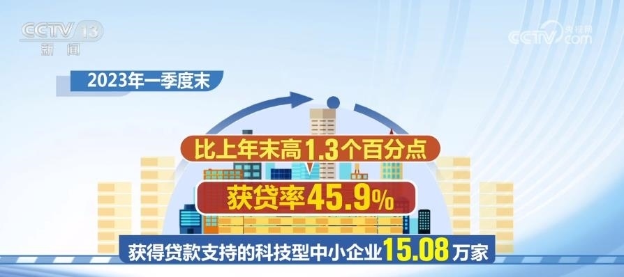 2023年一季度末,獲得貸款支持的科技型中小企業(yè)15.08萬家,獲貸率45.9%,比上年末高1.3個百分點??萍夹椭行∑髽I(yè)貸款余額1.76萬億元,同比增長25.2%,比上年末高0.9個百分點。
