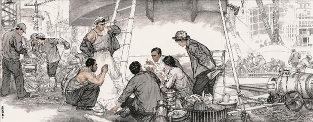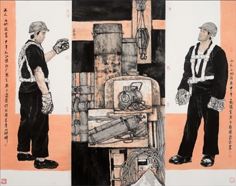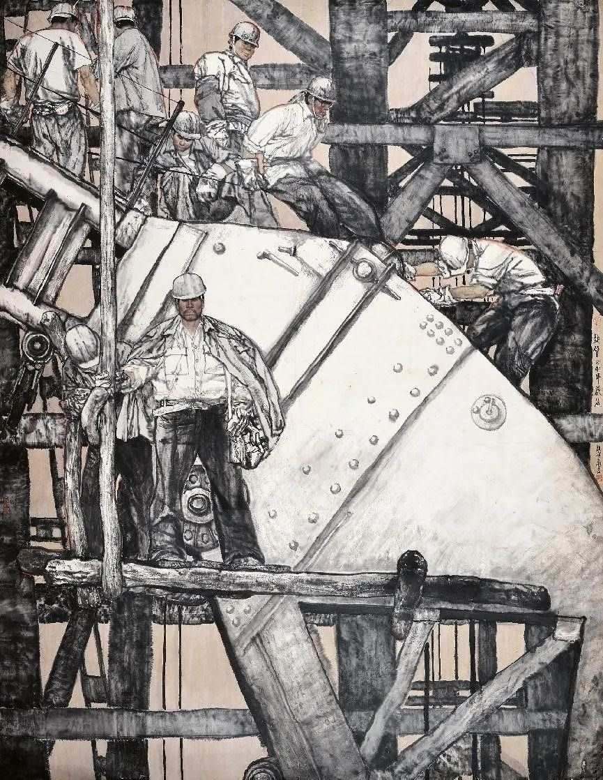 對傳統(tǒng)現(xiàn)實(shí)主義的繼承和拓展。作為一位具備卓越造型能力的人物畫家,蔡超始終堅(jiān)持深入現(xiàn)實(shí)生活,他以敏銳的觀察力和理解力,以豐富的人生閱歷不斷從生活中提煉創(chuàng)作母題,發(fā)掘常人所不易察覺的藝術(shù)趣味。因此,蔡超筆下的人物總是葆有鮮活的生命和氣息,他們不是空洞的“人民”,而是牢固與地氣相接,與時(shí)代共呼吸的真正的“人民”,他創(chuàng)造了嶄新的屬于贛鄱大地的人民形象,這是蔡超對于江西現(xiàn)實(shí)主義繪畫創(chuàng)作最重要的貢獻(xiàn)。同時(shí),蔡超不僅繼承了徐悲鴻、蔣兆和以來中國人物畫創(chuàng)作的優(yōu)良傳統(tǒng),更以“筆墨當(dāng)隨時(shí)代”的勇氣和魄力,在工業(yè)題材領(lǐng)域樹立了令人耳目一新的繪畫范式——這是一個(gè)前無古人的偉大突破。