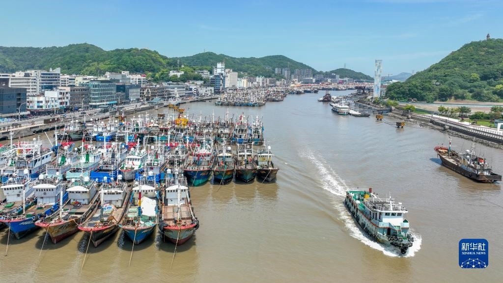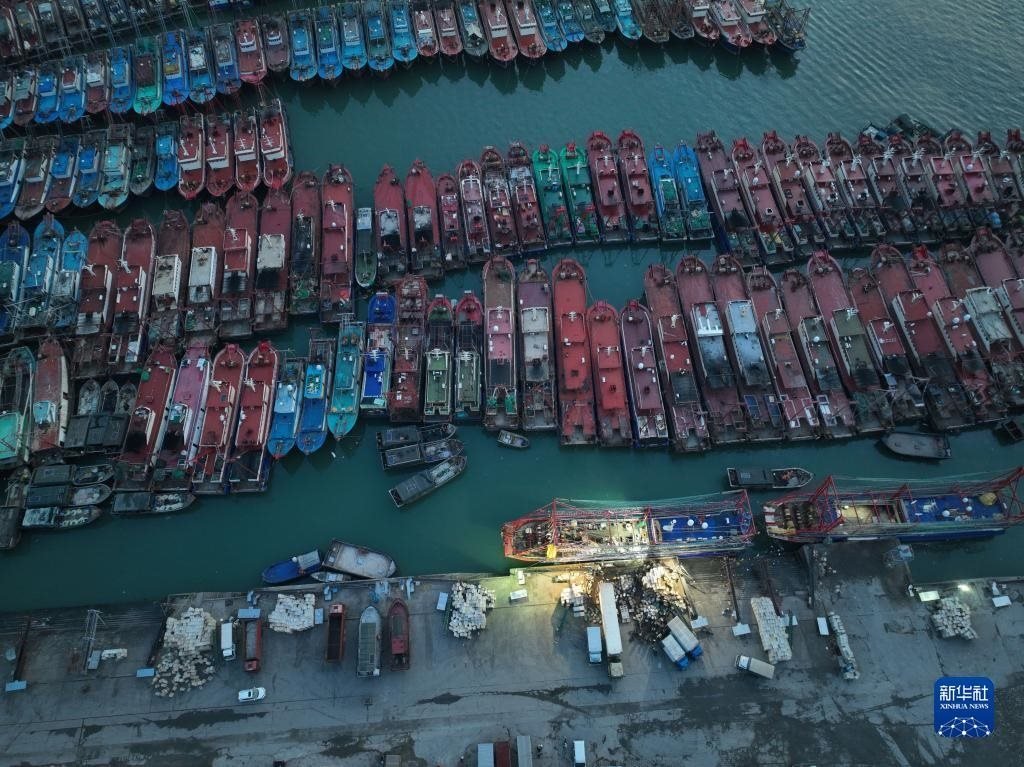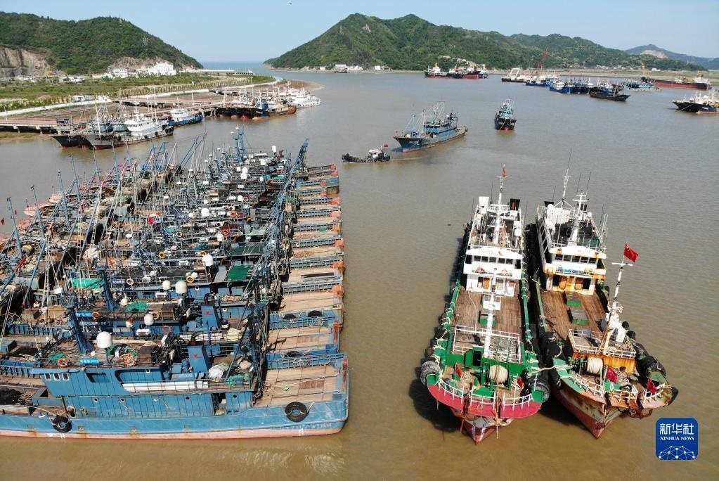 4月30日,在浙江省舟山市普陀區(qū)沈家門漁港,漁船歸港準(zhǔn)備休漁(無(wú)人機(jī)照片)。