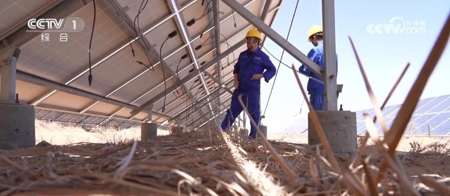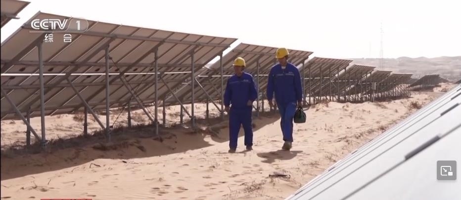 央視網(wǎng)消息:在寧夏中衛(wèi)市騰格里沙漠里,成千上萬塊藍(lán)色光伏板整齊排列,隨著太陽的運轉(zhuǎn)逐日追光,每年可以發(fā)電17億度。這里的工作人員被稱為“追日人”?!拔逡弧奔倨?,他們依然堅守在工作崗位上。