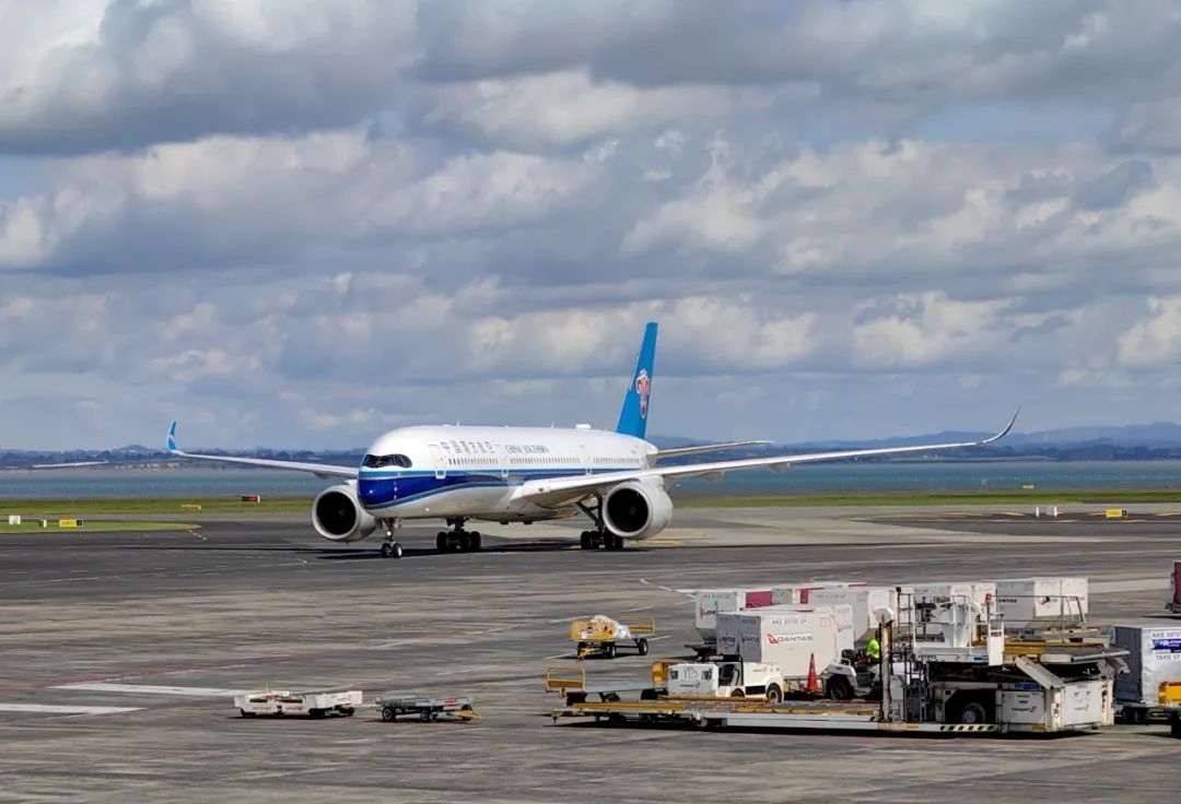 3月3日,搭載中國(guó)團(tuán)隊(duì)游客的中國(guó)南方航空公司班機(jī)抵達(dá)新西蘭奧克蘭國(guó)際機(jī)場(chǎng)。新華社發(fā)(程麒麟 攝)