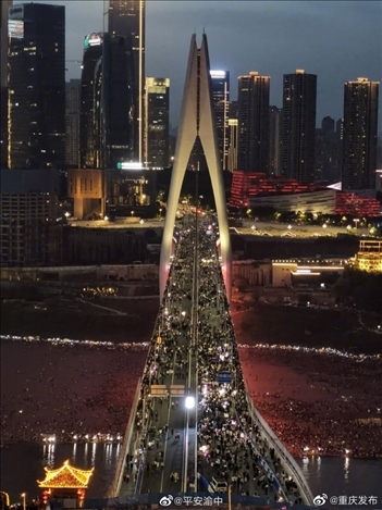 一直很寵粉的重慶又出手了:對(duì)千廝門大橋進(jìn)行封橋,專供游客打卡,橋上還安排上了各式各樣的小攤,煙火氣直接拉滿。