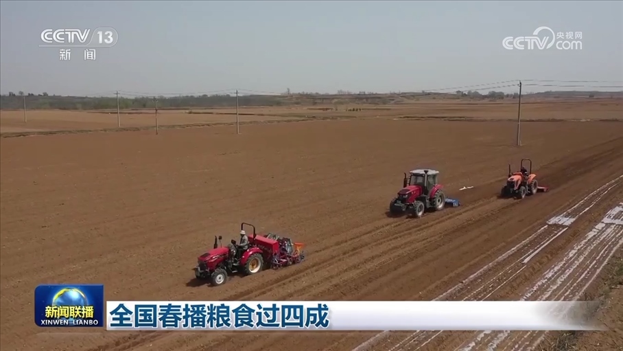 央視網消息(新聞聯(lián)播):眼下,全國春播糧食過四成,各地推進農機農藝融合,加大良種推廣力度,全力以赴保證播種質量。