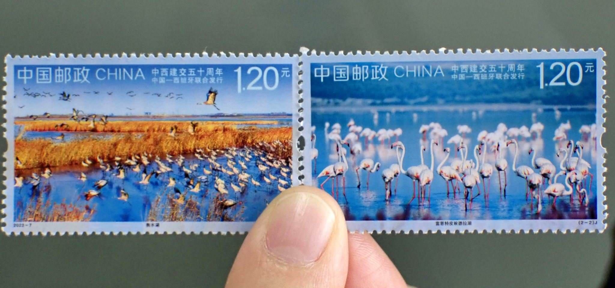 2023年5月10日,中國郵政發(fā)行《中西建交五十周年》紀念郵票(與西班牙聯(lián)合發(fā)行),紀念郵票1套2枚。視覺中國