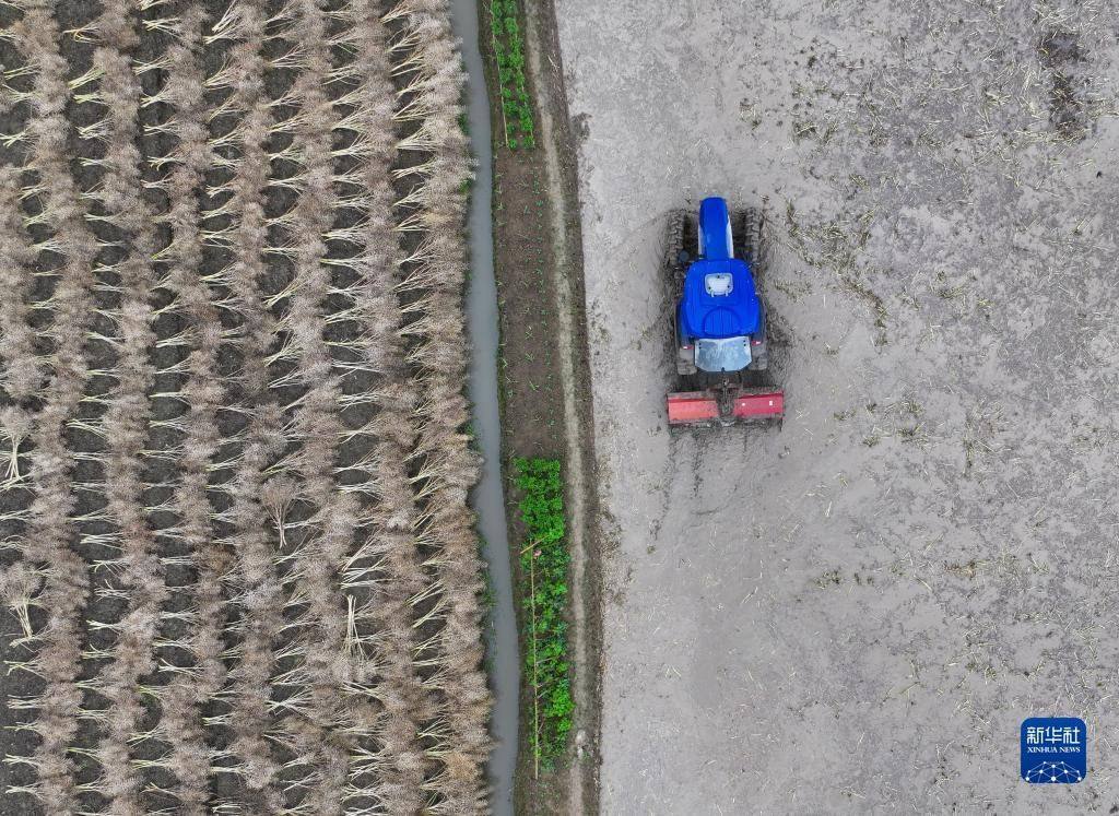 5月9日,四川省邛崍市桑園鎮(zhèn)農(nóng)民駕駛拖拉機(jī)進(jìn)行打漿作業(yè)。