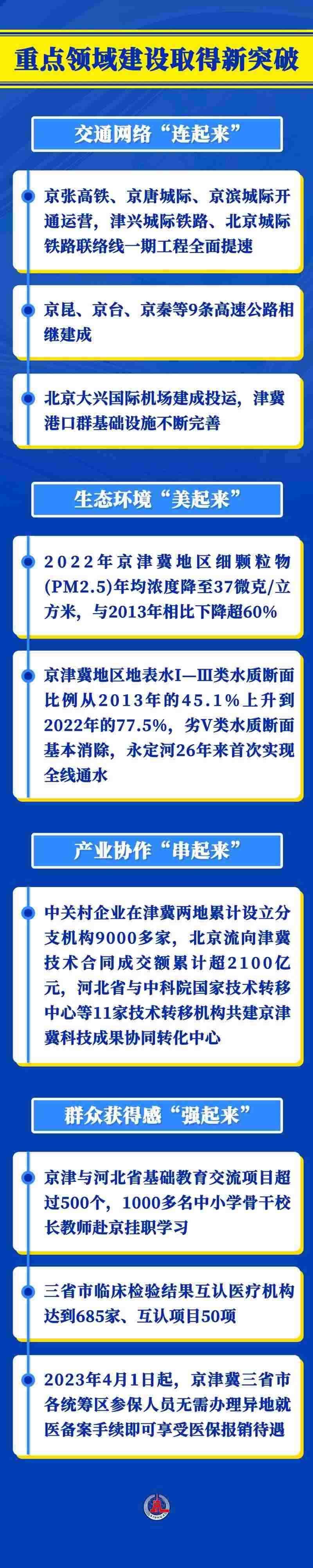 京津冀協(xié)同發(fā)展是一個系統(tǒng)工程。9年多來,三地攜手發(fā)力,重點區(qū)域協(xié)同發(fā)展步穩(wěn)蹄疾,交通、環(huán)境、產業(yè)、公共服務等重點領域建設不斷取得新突破。
