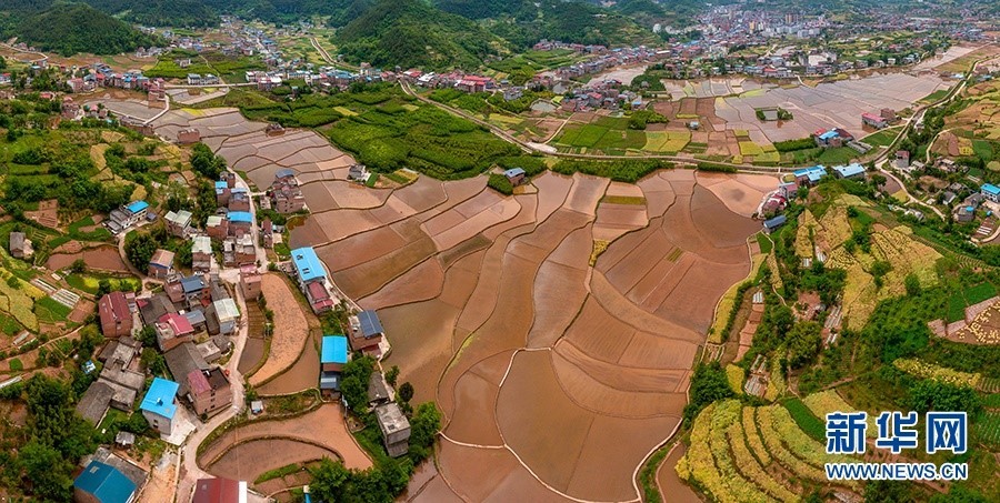 初夏時節(jié)的廟宇鎮(zhèn),農(nóng)田里水盈盈。新華網(wǎng)發(fā)(朱云平 攝)