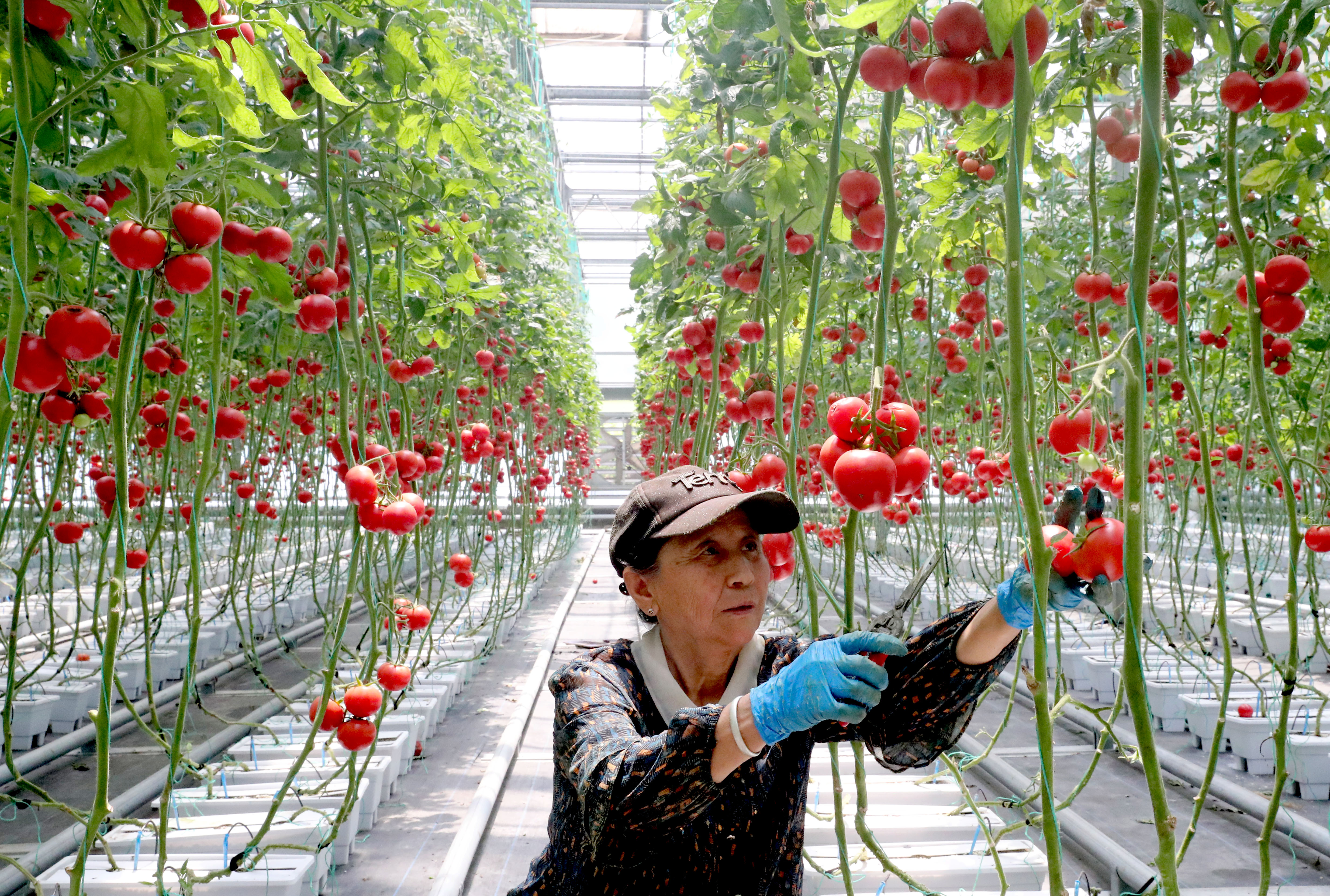 5月15日,村民在青島市即墨區(qū)北安街道一家智慧農(nóng)場內(nèi)采摘西紅柿供應市場。 張進剛 攝