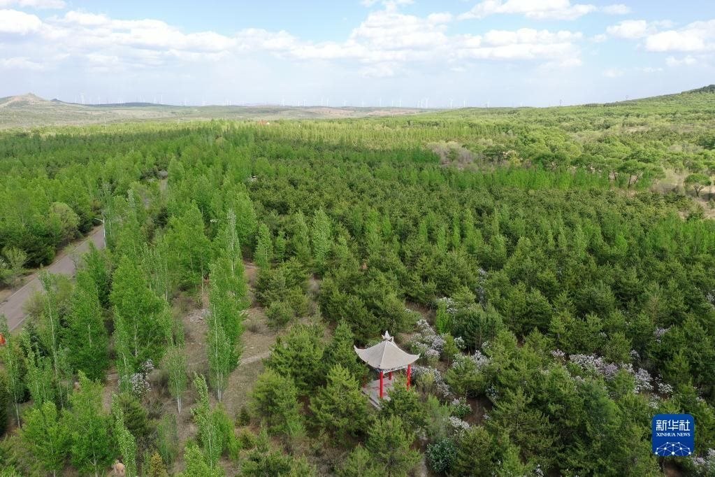 山西省右玉縣南山森林公園一角(5月18日攝,無人機(jī)照片)。