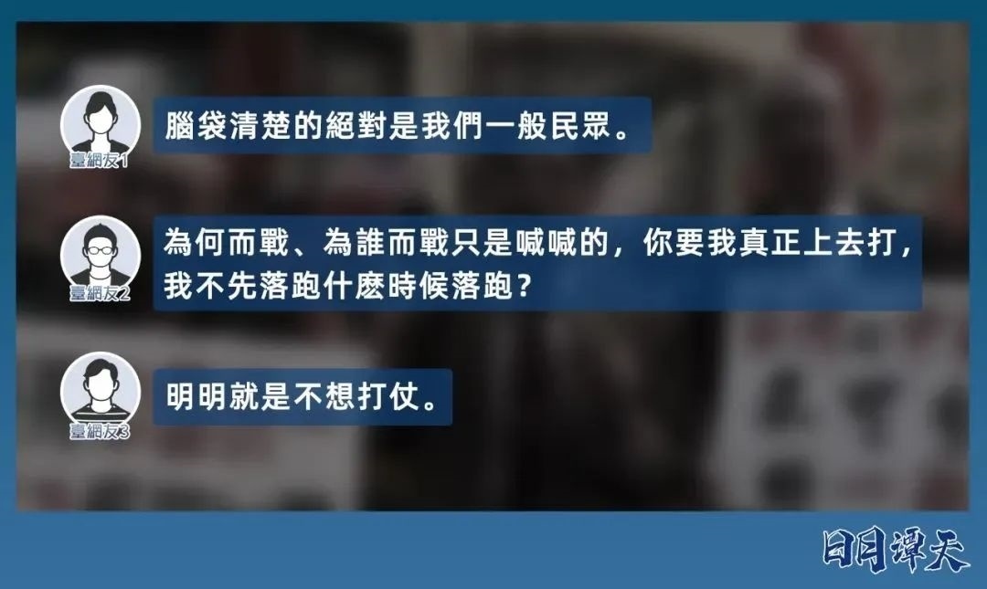 島內(nèi)專家給譚主分析了臺灣青年不愿再賣命背后的深層邏輯。越來越多臺青意識到,“臺獨(dú)”意味著戰(zhàn)爭,為“臺獨(dú)”上戰(zhàn)場,打的是一場非正義的分裂國土之戰(zhàn),要背負(fù)歷史罵名,臺灣年輕人憑什么要為此賭上性命?與其被民進(jìn)黨當(dāng)局裹挾著為“臺獨(dú)”送死,不如盡早“跳車”,遠(yuǎn)離臺軍。