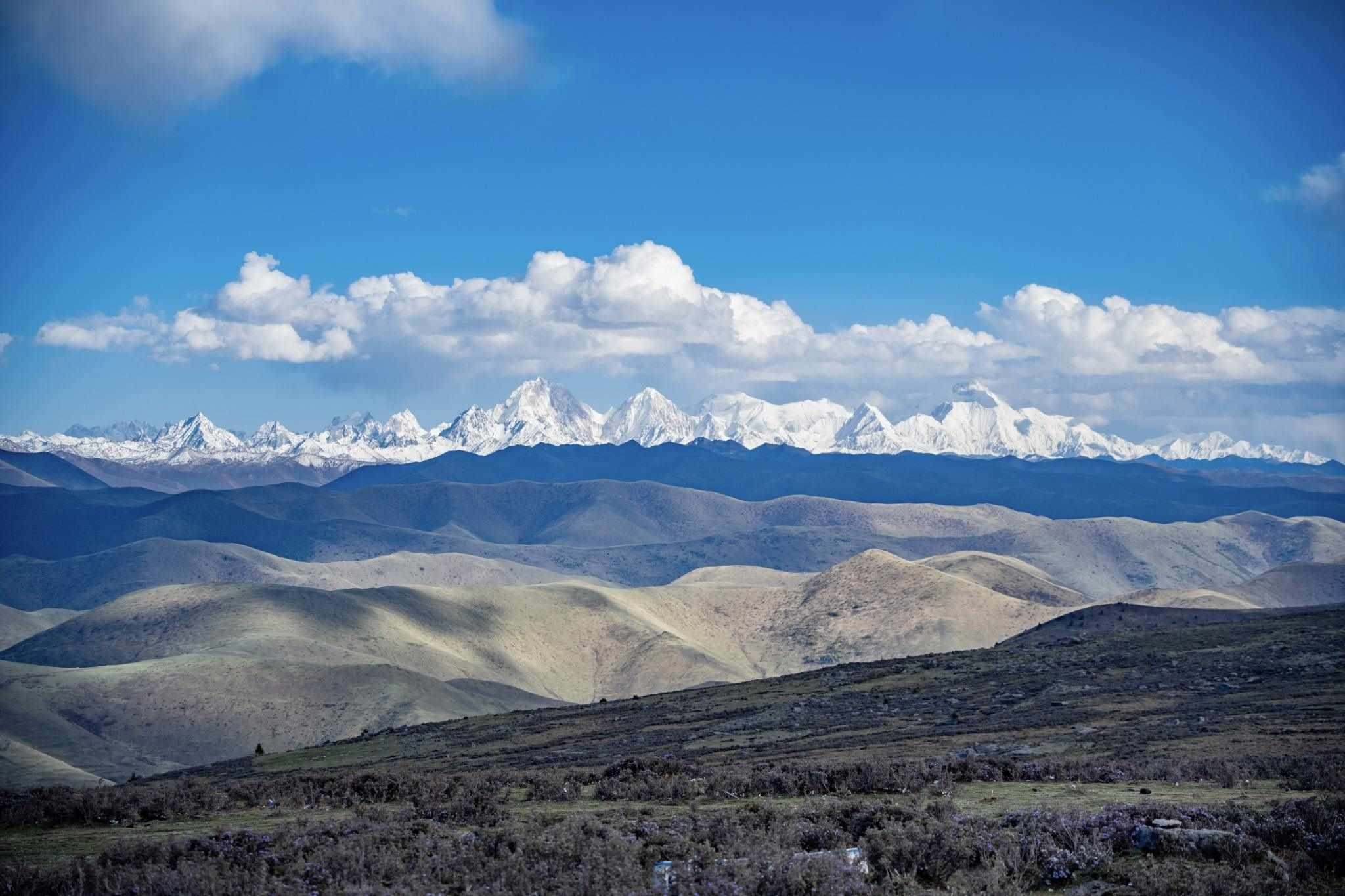 四川甘孜:魚子西觀景臺(tái)四周群山林立