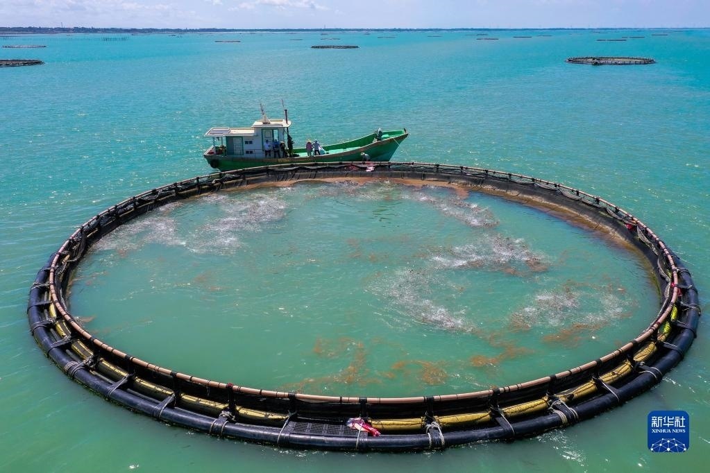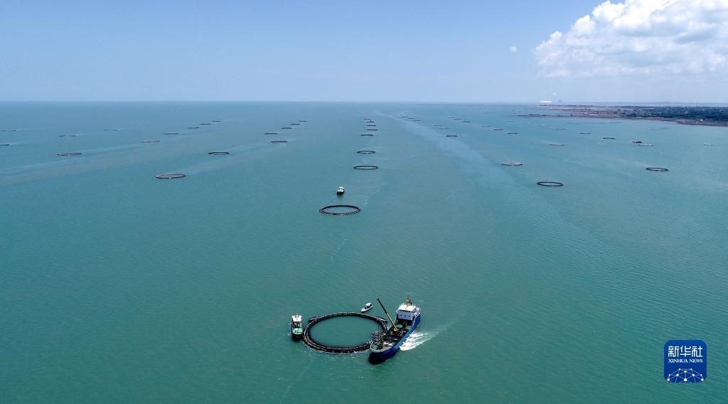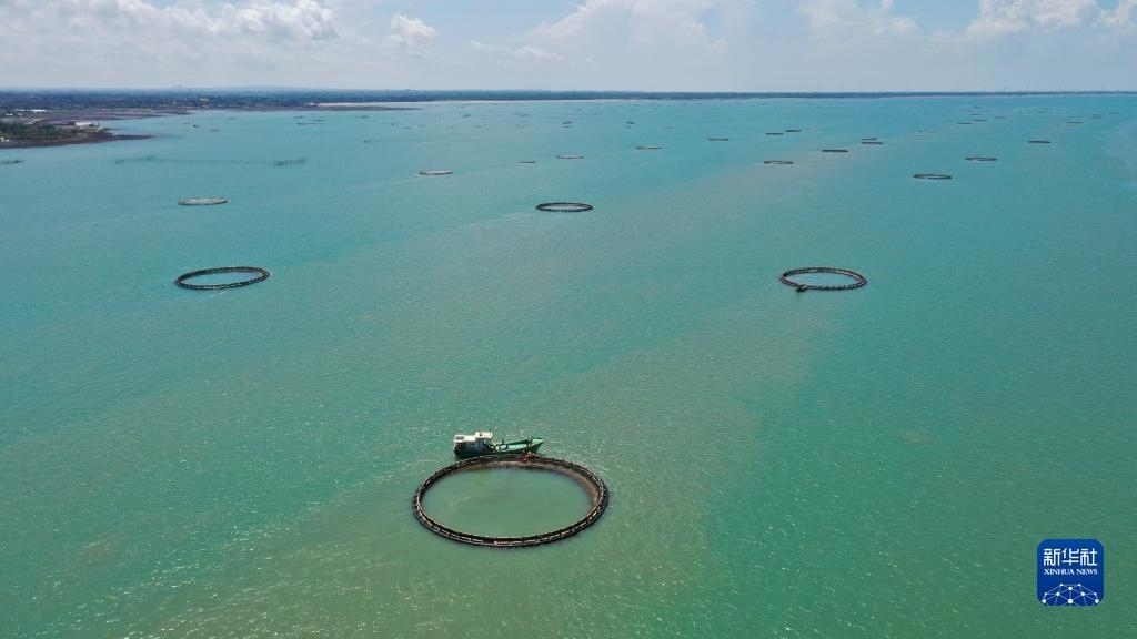 廣東省湛江市是全國(guó)最大的金鯧魚(yú)養(yǎng)殖基地之一,被譽(yù)為“中國(guó)金鯧魚(yú)之都”。在深藍(lán)色海面上,整齊分布著一串串100米左右周長(zhǎng)的深海網(wǎng)箱,孕育著被譽(yù)為“黃金魚(yú)”的金鯧魚(yú),年產(chǎn)量約10萬(wàn)噸,約占全國(guó)產(chǎn)量三到四成,除了供應(yīng)中國(guó)市場(chǎng),還出口到美國(guó)、印度、馬來(lái)西亞等國(guó)家和地區(qū)。隨著近年金鯧魚(yú)深海養(yǎng)殖規(guī)?;?、集群化、市場(chǎng)化步伐加快,小小“黃金魚(yú)”每年可創(chuàng)造百億元產(chǎn)值。   新華社記者 盧漢欣 攝