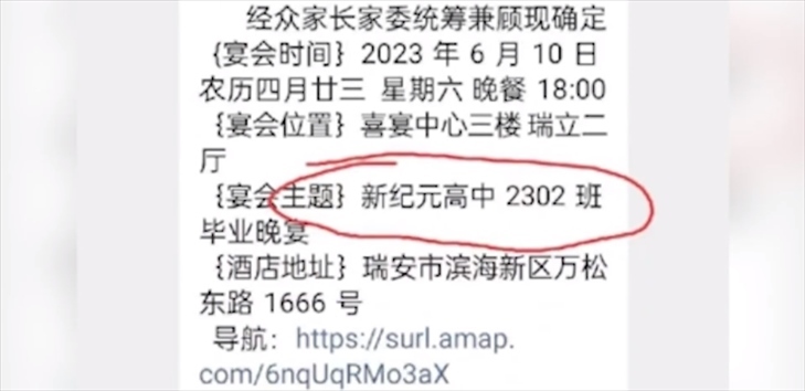 ·溫州一高中高額收費組織畢業(yè)晚宴?校方回應:系家長私自組織,任課教師不知情且未參與。