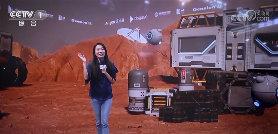總臺(tái)記者 馬宇涵:你現(xiàn)在看到的我正在火星上漫游,和未來(lái)的機(jī)器人打個(gè)招呼。但現(xiàn)實(shí)里的我其實(shí)正站在一個(gè)虛擬現(xiàn)實(shí)的影棚中。沒(méi)錯(cuò),就是通過(guò)這樣新的拍攝手法,無(wú)論過(guò)去還是未來(lái),你想去到哪里,我們就能去到哪里。