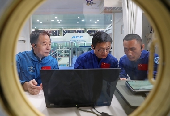 5月8日,神舟十六號(hào)乘組在飛船模擬器里。本文圖片均由徐部拍攝