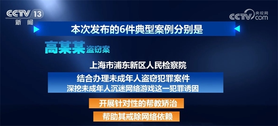 高某某盜竊案。上海市浦東新區(qū)人民檢察院結(jié)合辦理未成年人盜竊犯罪案件,深挖未成年人沉迷網(wǎng)絡(luò)游戲這一犯罪誘因,開展針對(duì)性的幫教矯治,幫助其戒除網(wǎng)絡(luò)依賴。
