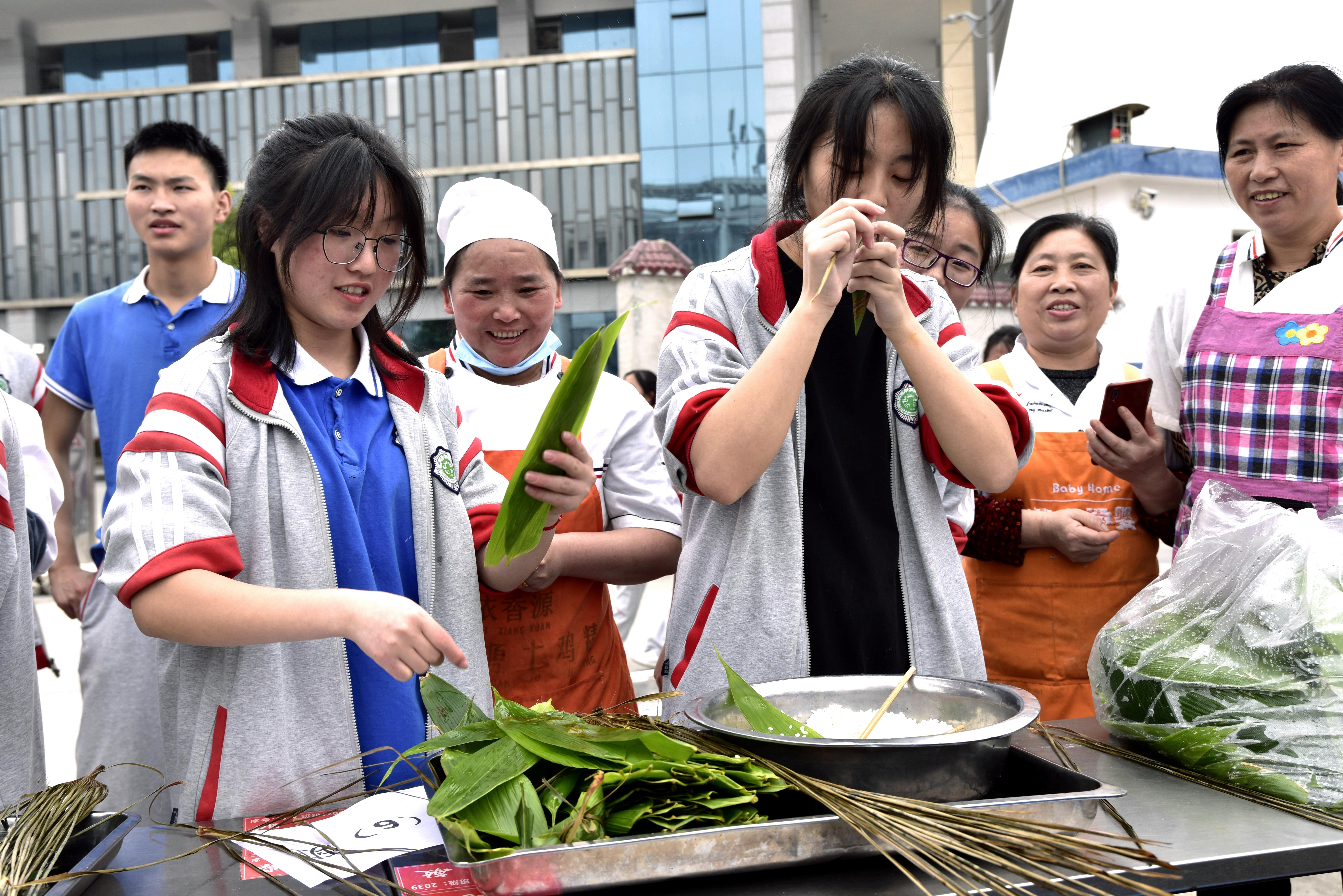 近日拍攝的貴州省務(wù)川中學(xué)高三學(xué)生在參加“美食減壓”迎高考活動。