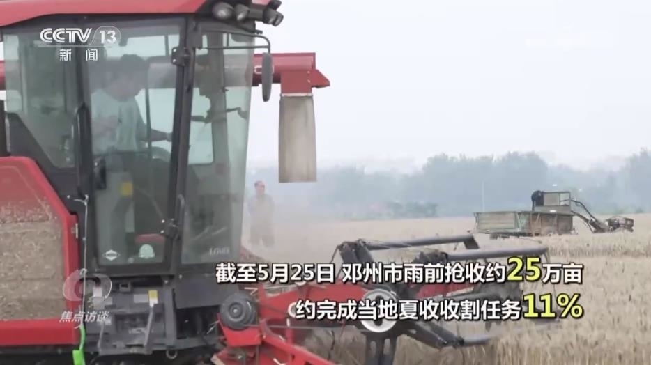 央視網(wǎng)消息(焦點(diǎn)訪談):今天是芒種節(jié)氣,芒種的意思是有芒的麥子快收,有芒的稻子可種。這是一年中農(nóng)事最忙的時(shí)節(jié)。夏熟的要收,秋收的要播,春種的要管,首先就是麥?zhǔn)铡:幽媳环Q為“中原糧倉”,是我國小麥播種面積最大的省份,小麥年產(chǎn)量占到全國的四分之一,而位于河南南部的鄧州,則是全國知名的產(chǎn)糧大縣,小麥種植面積210多萬畝。但從5月25日開始,當(dāng)?shù)貐s連續(xù)幾天都是下雨天氣。怎么減輕雨水對收成的影響?
