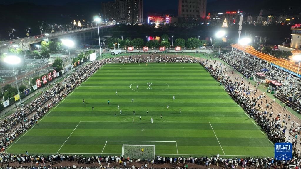 每逢比賽夜,球場(chǎng)周圍人山人海,每場(chǎng)比賽都有上萬(wàn)名觀眾、相關(guān)內(nèi)容全網(wǎng)瀏覽量超20億次、社會(huì)各界名人踴躍點(diǎn)贊……這是貴州省黔東南州榕江縣的“村超”足球比賽現(xiàn)場(chǎng)。