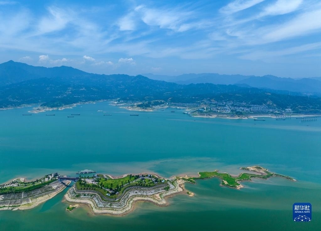 6月10日,船舶從湖北省宜昌市秭歸縣木魚島外沿水域駛過(無人機(jī)照片)。