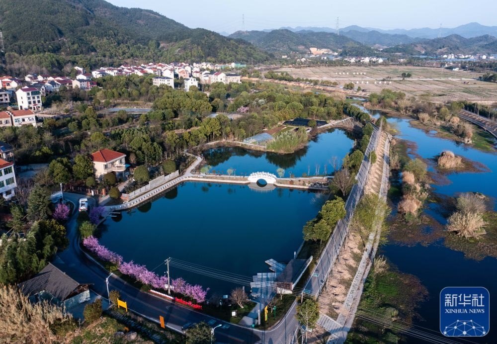 空中俯瞰浙江金華市金東區(qū)嶺下鎮(zhèn)八仙溪及周邊村莊(3月14日攝,無人機(jī)照片)。近年來,嶺下鎮(zhèn)通過“抓源頭、強(qiáng)整治、做項(xiàng)目、重長效”的治理思路,先后關(guān)停八仙溪沿岸多家制砂企業(yè)及養(yǎng)殖場(chǎng),清理河道垃圾,完成28個(gè)村農(nóng)村生活污水處理工程和51口池塘清淤,2018年以來八仙溪水質(zhì)常年保持在Ⅱ類以上。新華社記者 徐昱 攝