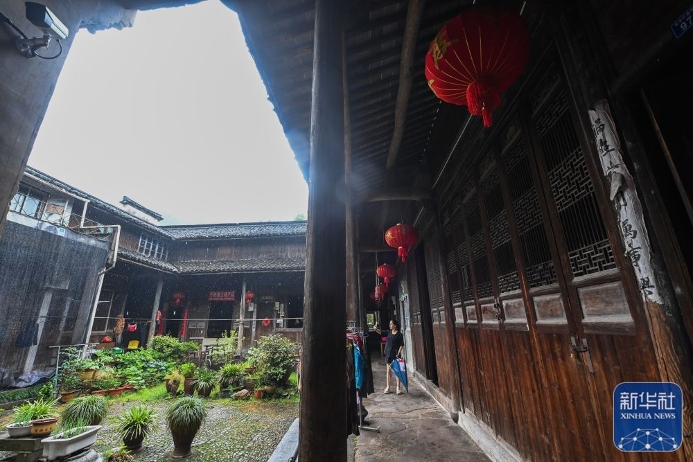 6月8日,游客在浙江諸暨市斯宅村的千柱屋景區(qū)內(nèi)游覽。近年來,當(dāng)?shù)貙?duì)古民居建筑進(jìn)行有效保護(hù)和修復(fù),積極弘揚(yáng)古村落文化特色,打造優(yōu)美人居環(huán)境,實(shí)現(xiàn)村莊發(fā)展與歷史文化環(huán)境的融合。新華社記者 徐昱 攝