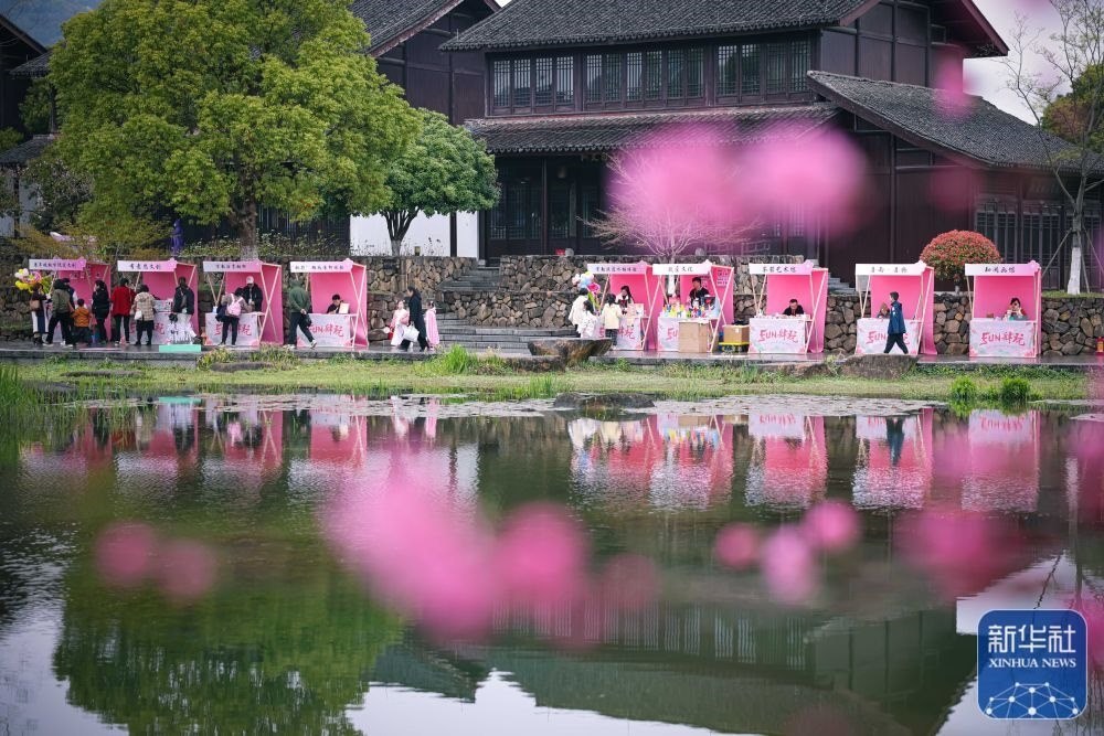 游客在浙江杭州丁蘭街道皋城村的桃園內(nèi)游園賞花(3月25日攝)。近年來,杭州丁蘭街道皋城村在改善村容村貌、建設(shè)美麗鄉(xiāng)村的基礎(chǔ)上發(fā)展鄉(xiāng)村旅游業(yè),促進(jìn)鄉(xiāng)村文旅融合。新華社記者 江漢 攝