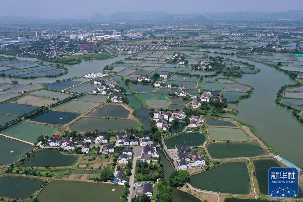 6月9日拍攝的浙江湖州市南潯區(qū)和孚鎮(zhèn)新荻村(無人機(jī)照片)。近年來,新荻村大力發(fā)展水文化、漁文化、菱文化,結(jié)合自身特色發(fā)展休閑鄉(xiāng)村旅游,打造美麗鄉(xiāng)村升級(jí)版。新華社記者 黃宗治 攝