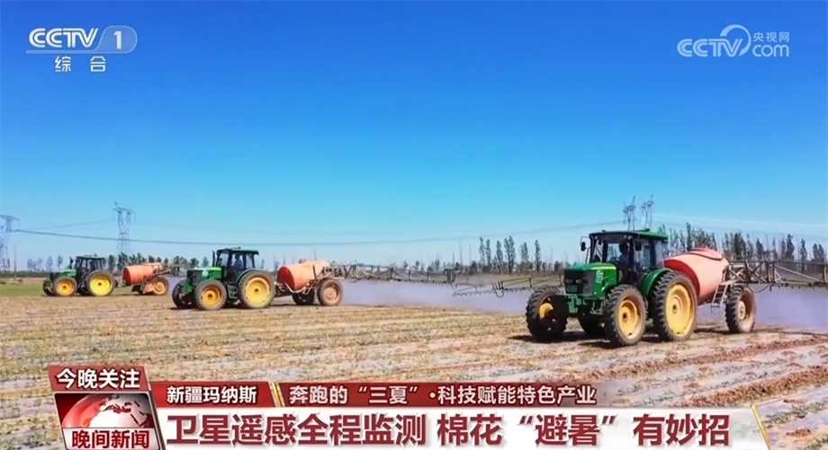 眼下,新疆昌吉瑪納斯縣的棉花正值現(xiàn)蕾期。現(xiàn)蕾期指的是出現(xiàn)花蕾到開花這一段時間,這個時候棉株生長最快,然而持續(xù)的高溫給田間管理帶來考驗。在瑪納斯縣樂土驛鎮(zhèn)的棉花田里,三臺裝有北斗導(dǎo)航系統(tǒng)的大馬力拖拉機正按照預(yù)先設(shè)定的線路進(jìn)行除草作業(yè)。這是農(nóng)技人員通過衛(wèi)星遙感棉花全程監(jiān)測技術(shù),幫種植戶制定的科學(xué)田管方案。