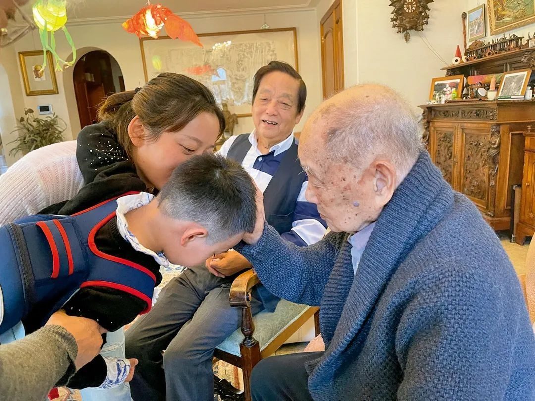 ▲天予被黃永玉先生摸頭“加持”