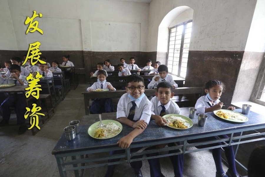 在尼泊爾加德滿都,學(xué)生們參加微笑兒童項(xiàng)目啟動儀式并就餐(2022年7月11日攝)。由“全球發(fā)展和南南合作基金”支持的微笑兒童項(xiàng)目惠及約3600名尼泊爾學(xué)生,解決學(xué)生就餐問題。