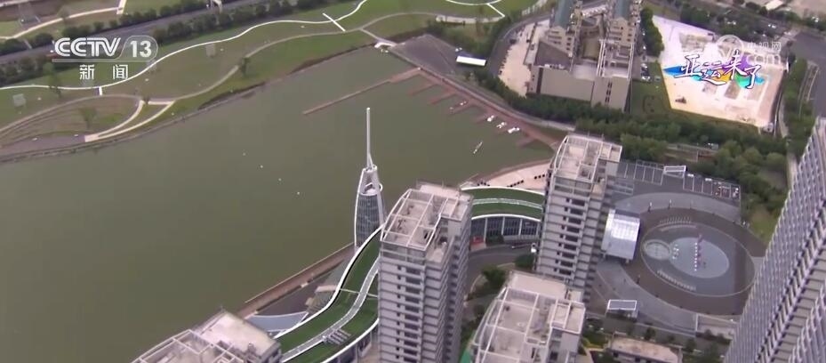 總臺(tái)記者 梁燁:但是要說溫州什么運(yùn)動(dòng)最熱鬧,那就肯定是龍舟了。我們現(xiàn)在看到的是溫州龍舟運(yùn)動(dòng)中心,這里是全亞洲最高標(biāo)準(zhǔn)的龍舟賽場(chǎng)。我們從空中俯瞰,整棟樓看起來非常狹長(zhǎng),并且高低起伏猶如山脈,就好像是一條龍靜臥在水面之上,因此,這幢樓也被稱為“龍樓”。比賽時(shí),這里主要作賽事保障用途。緊挨著龍樓的這座,從正面看像是船槳,從側(cè)面看像龍舟的建筑就是舟塔,這也是比賽的終點(diǎn)塔。比賽期間,裁判員們就會(huì)在這里觀看比賽,在這里計(jì)時(shí)計(jì)分。此時(shí)此刻,我們看到水面上正在進(jìn)行演練,他們所劃行的這1200米的賽道到時(shí)候就是龍舟的比賽場(chǎng)地。