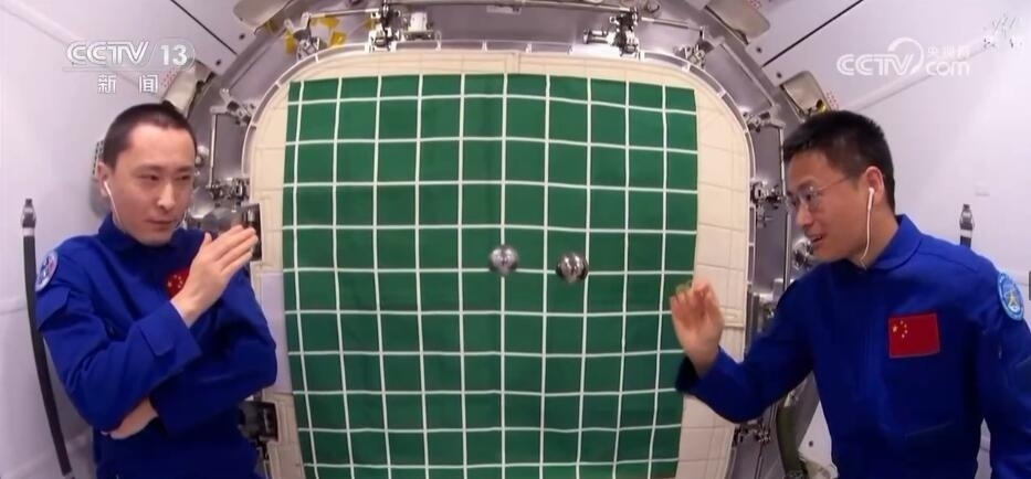 在約48分鐘的授課中,神舟十六號航天員景海鵬、朱楊柱、桂海潮生動(dòng)展示介紹了空間站夢天實(shí)驗(yàn)艙工作生活場景,演示了球形火焰實(shí)驗(yàn)、奇妙“乒乓球”實(shí)驗(yàn)、動(dòng)量守恒實(shí)驗(yàn)以及又見陀螺實(shí)驗(yàn),并生動(dòng)講解了實(shí)驗(yàn)背后的科學(xué)原理。授課期間,航天員通過視頻通話形式與地面課堂師生進(jìn)行了實(shí)時(shí)互動(dòng)交流。