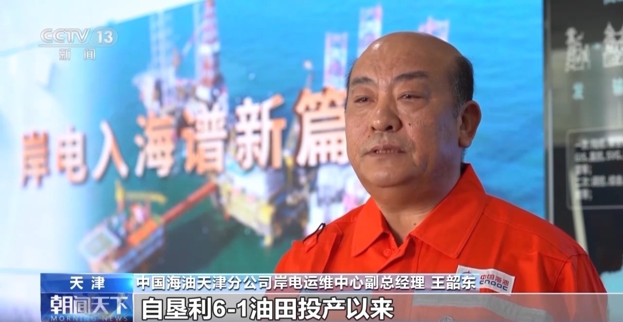 中國海油天津分公司岸電運(yùn)維中心副總經(jīng)理 王韶東:自墾利6-1油田投產(chǎn)以來,岸電應(yīng)用工程已累計供電約3800萬度。按照設(shè)計規(guī)模,岸電三期工程全部投用后,渤海油田約75%的海上平臺將實(shí)現(xiàn)岸電供給。